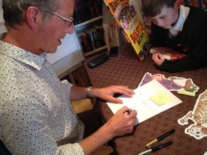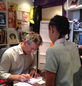 And so today, at around half past two, Martin arrived, accompanied by the equally lovely Elizabeth. Needless to say, there was much excitement abounding. Phoenix FM and the Gazette have been ever so generous and enthusiastic with their support, as have local schools. All of which meant that Martin was pretty much trapped with us for three hours, with a constant queue heading out of the door.